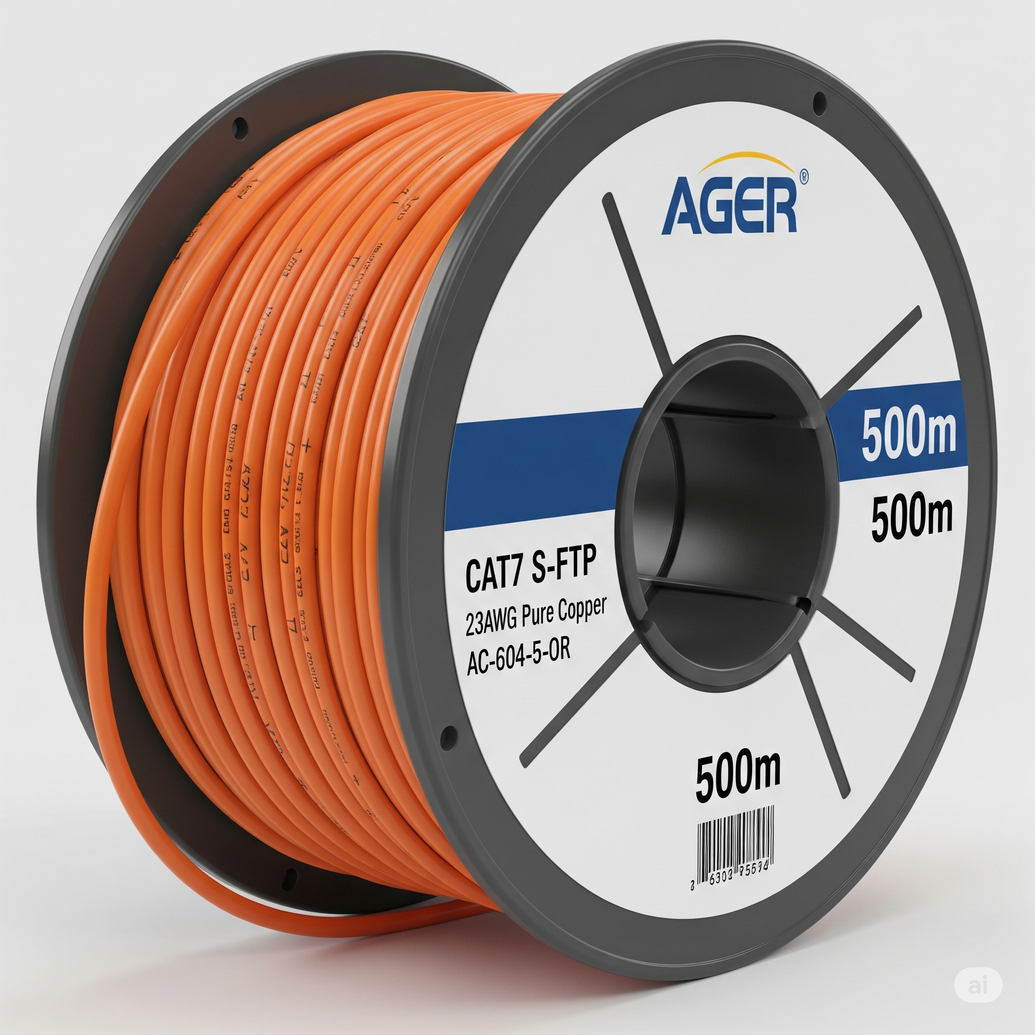 AGER CAT7 S-FTP 23-1AWG Turuncu 500m Makara Saf Bakır Kablo 0.57mm AC-604-5-OR
