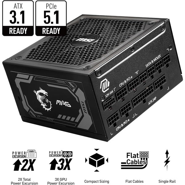 Msı 1000W 80+ Gold Mag A1000Gl Pcıe 5.1 Tam Modüler Power Supply