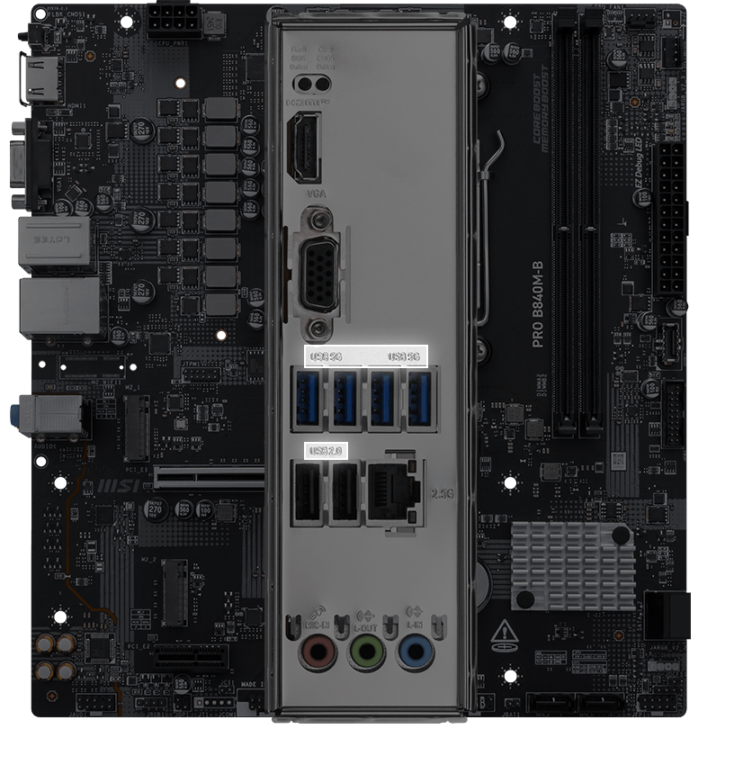 MSI PRO B840MB AM5 DDR5 8000MHZ(OC) HDMI ,VGA,2X M.2 USB 5 GBS 2.5G LAN MATX